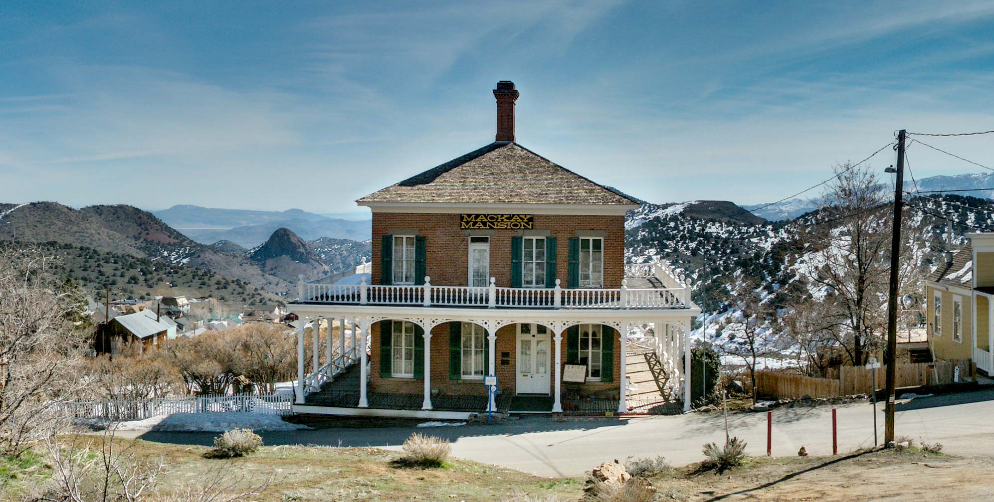 Known as the Mackay Mansion, this 1860s era home was actually built for the superintendent of the Gould and Curry Mine. John Mackay later bought the mine and the building, and may have lived in the mansion for a short time. After entering the building’s office, click the hotspots to explore the front parlor, the bedroom where mining baron James Fair may have slept, and the bathroom where the elegant 1861 water closet is claimed to be the first flushing toilet in Nevada.