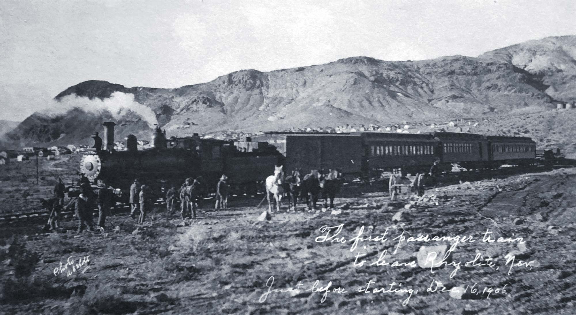 In 1903 there were no buildings, no roads, and no people in what was to become Rhyolite. Only five years later some 6,000 optimists lived in an area that was served by three different railroads: the fourth-largest town in Nevada. But less than a decade afterwards silence returned to this remote desert valley, as only a handful of people remained.