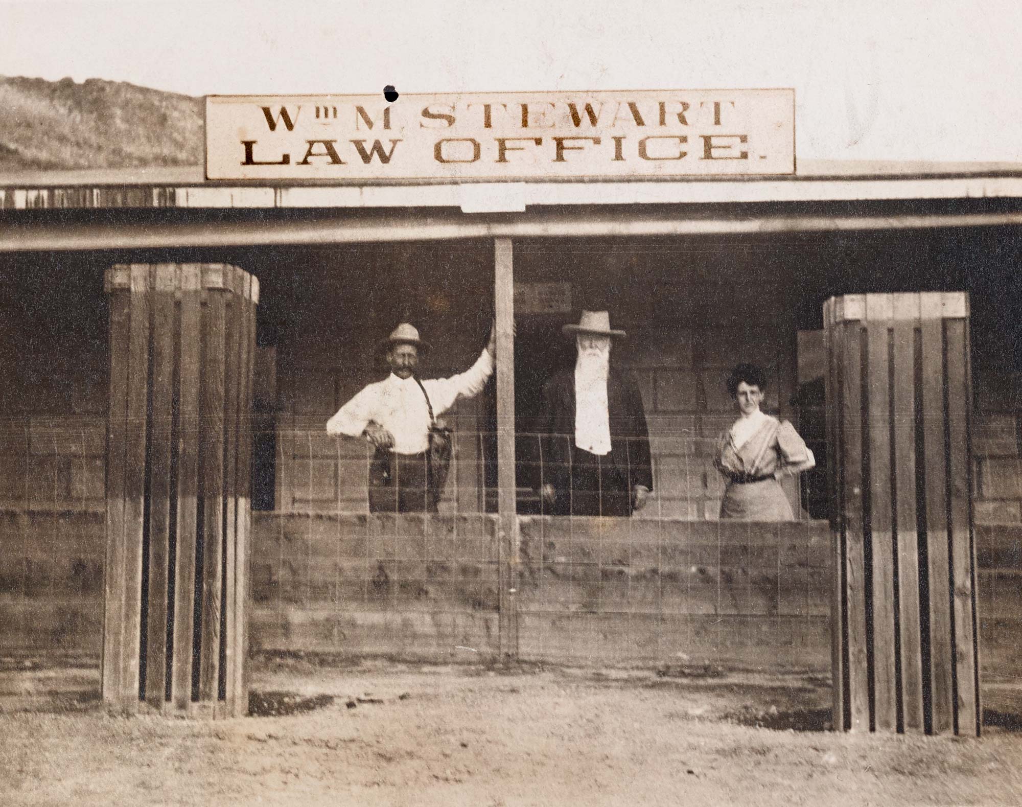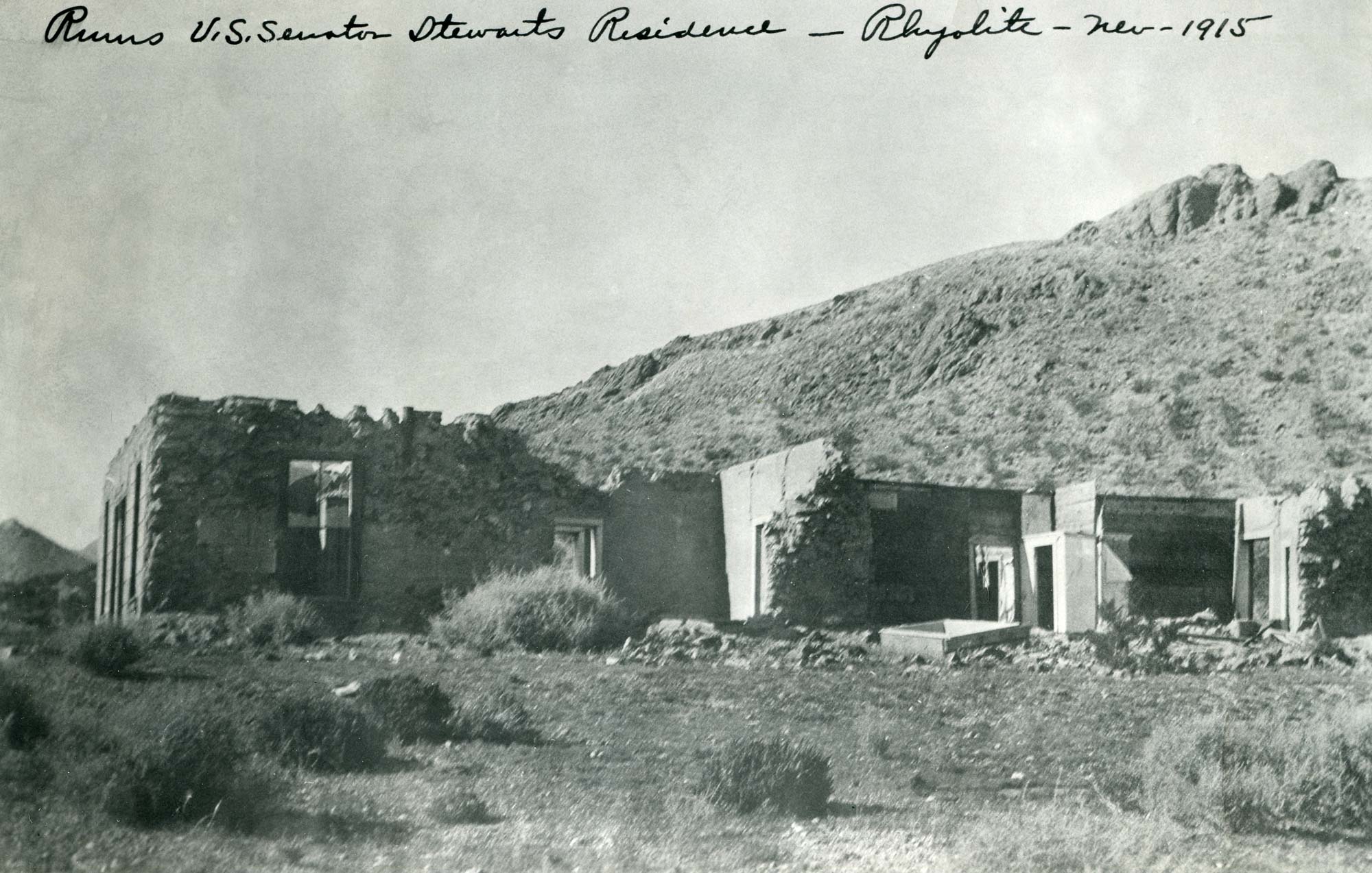 After leaving the Senate in the early 1900s, Stewart moved to the Bullfrog district and settled in Rhyolite around 1905, when he was about eighty years old, to participate in that new mining boom. He built an impressive ten‑room home and law office complex—described as among the finest buildings in town—signaling both his wealth and his ongoing role as a mining attorney and promoter in the district. The ruins of his home may be noted in the VR tour.