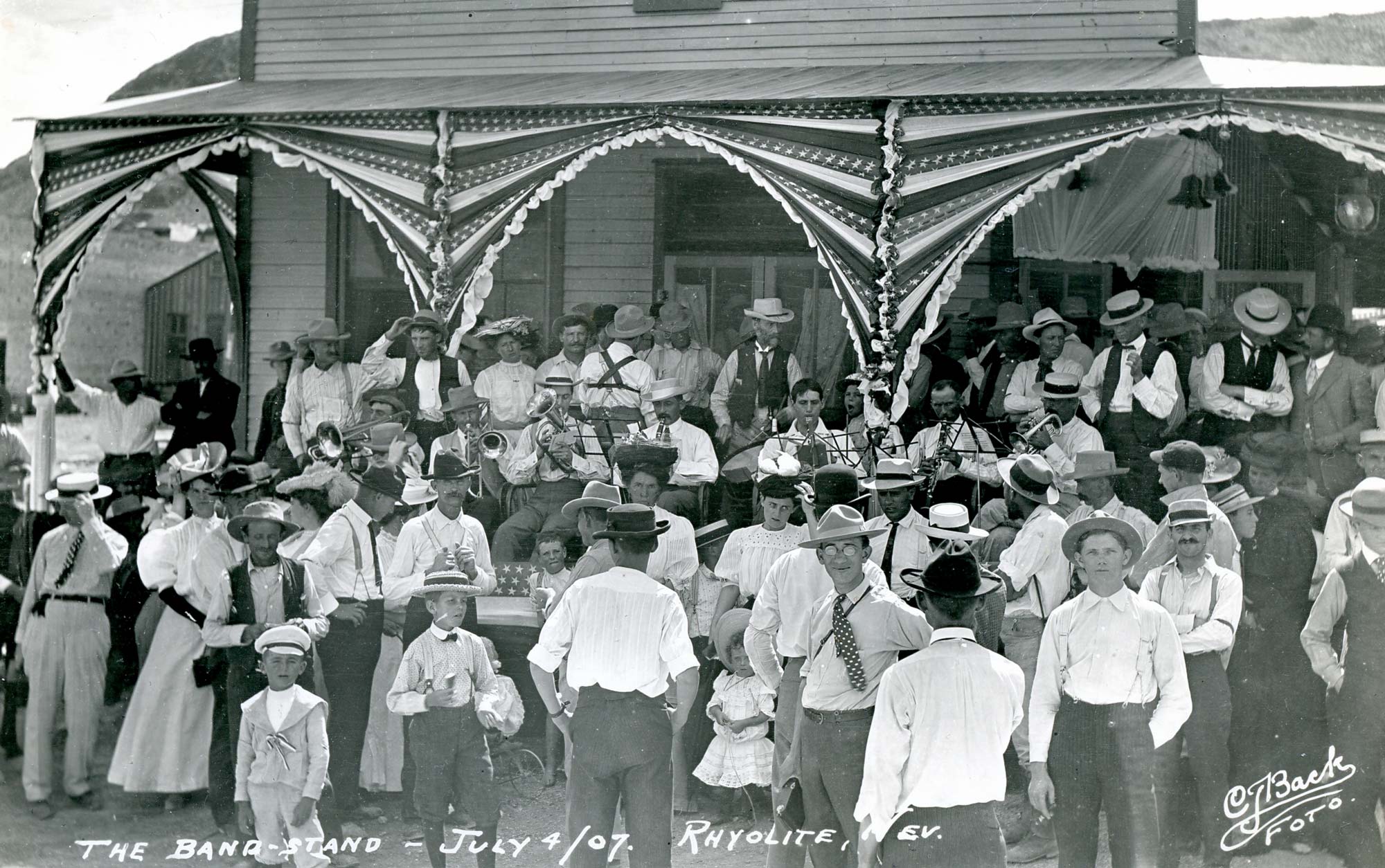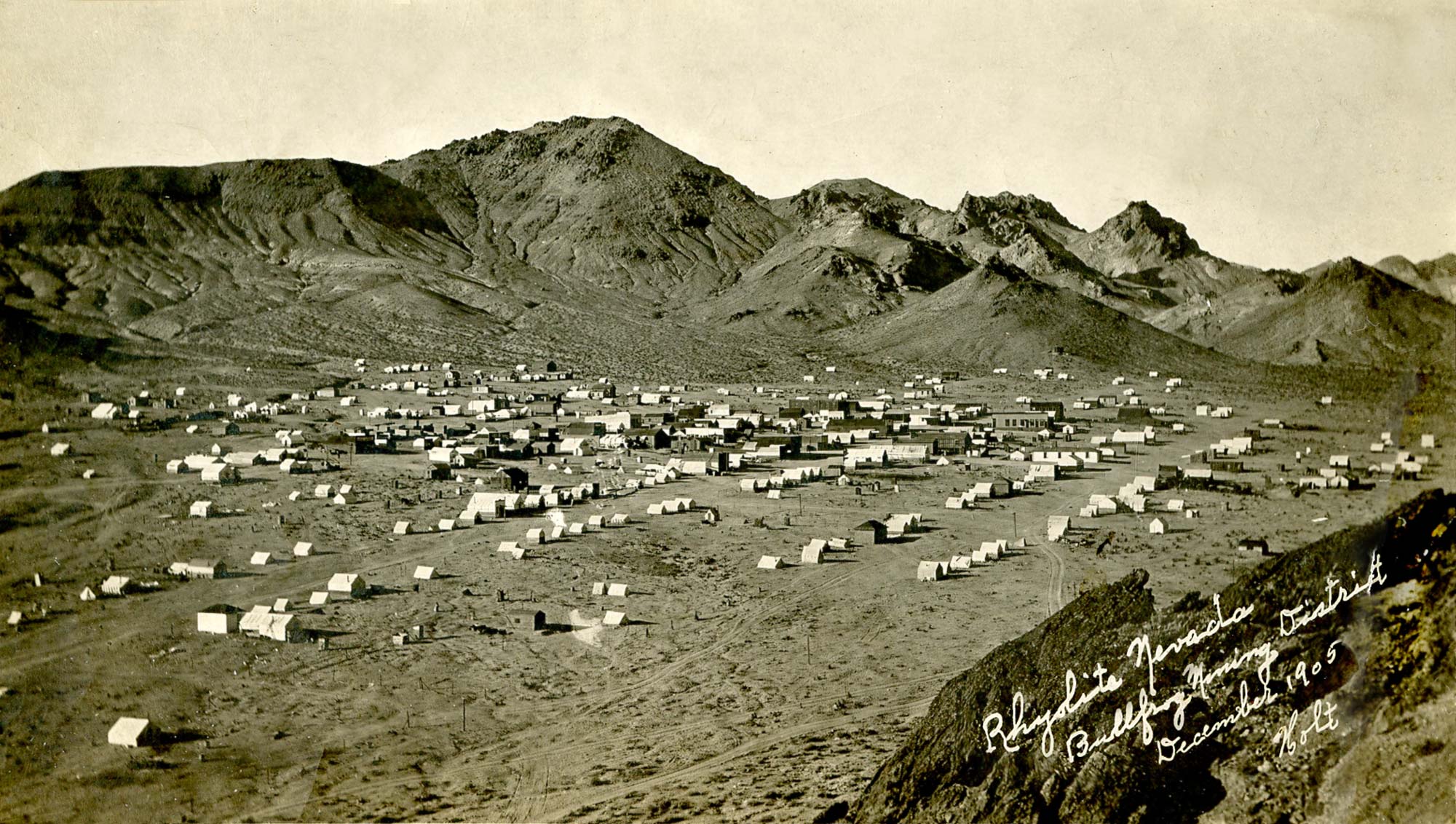 Within months, camps with names like Orion, Amargosa, Bonanza, Bullfrog and others appeared, shifted, merged, or disappeared as prospectors chased new showings. In November 1904, promoters A. G. Cushman, Percy Stanley, C. L. Elliott and Frank J. Busch staked out a new townsite called Rhyolite, which was formally platted on 15 January 1905 and began selling lots a month later.