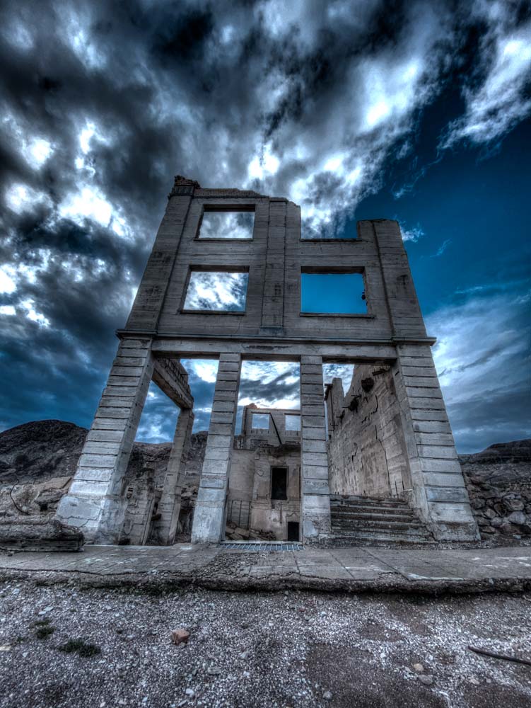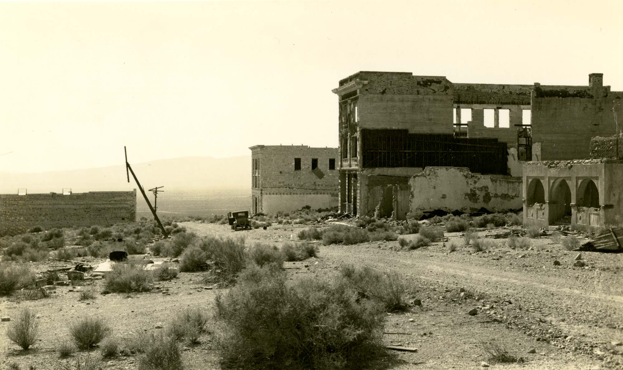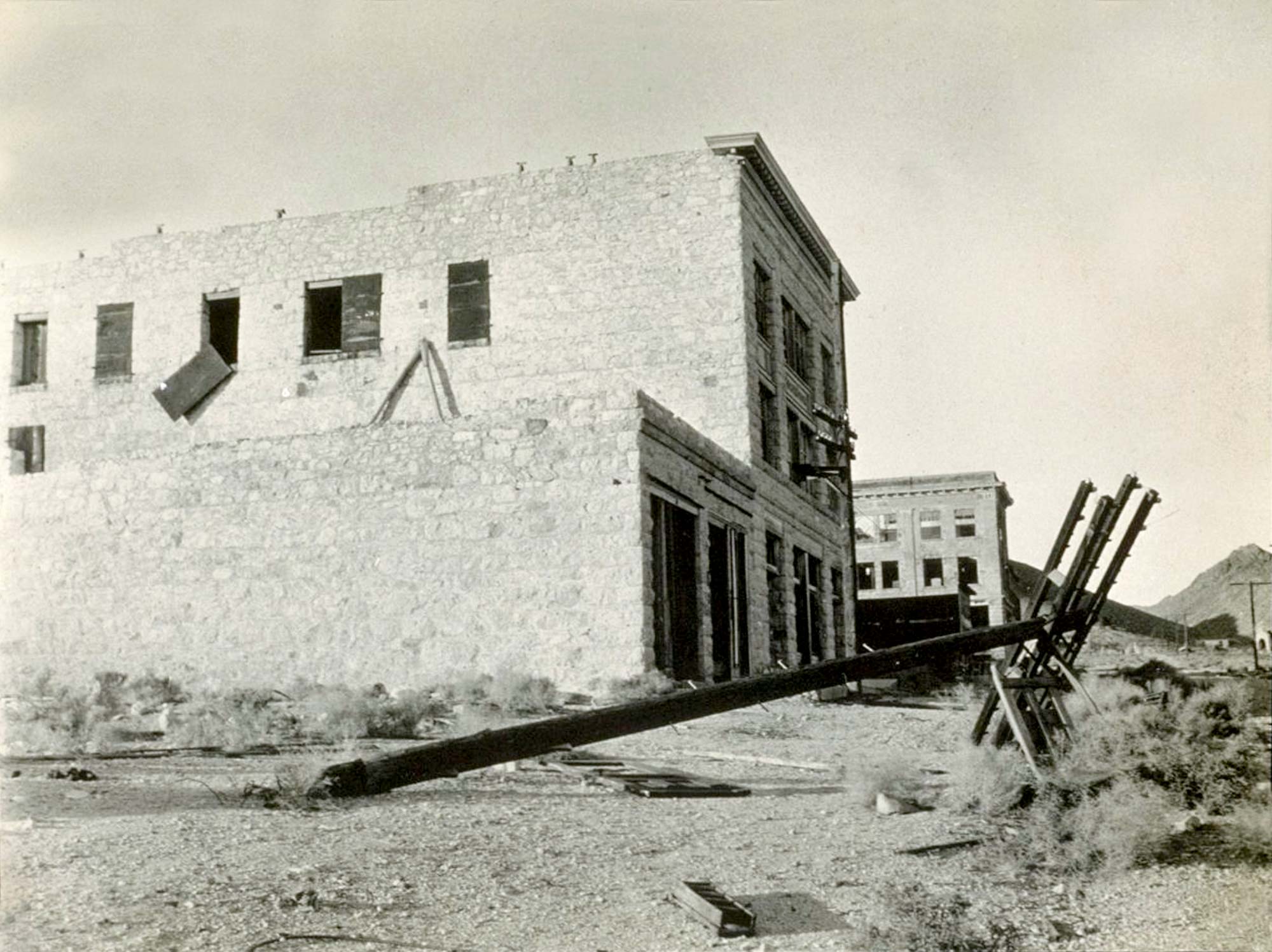 The decisive blow came when the Montgomery Shoshone Mine closed in March 1911 after producing nearly two million dollars in gross output. Without its largest employer and symbol of prosperity, Rhyolite rapidly emptied out. The Rhyolite Herald ceased public