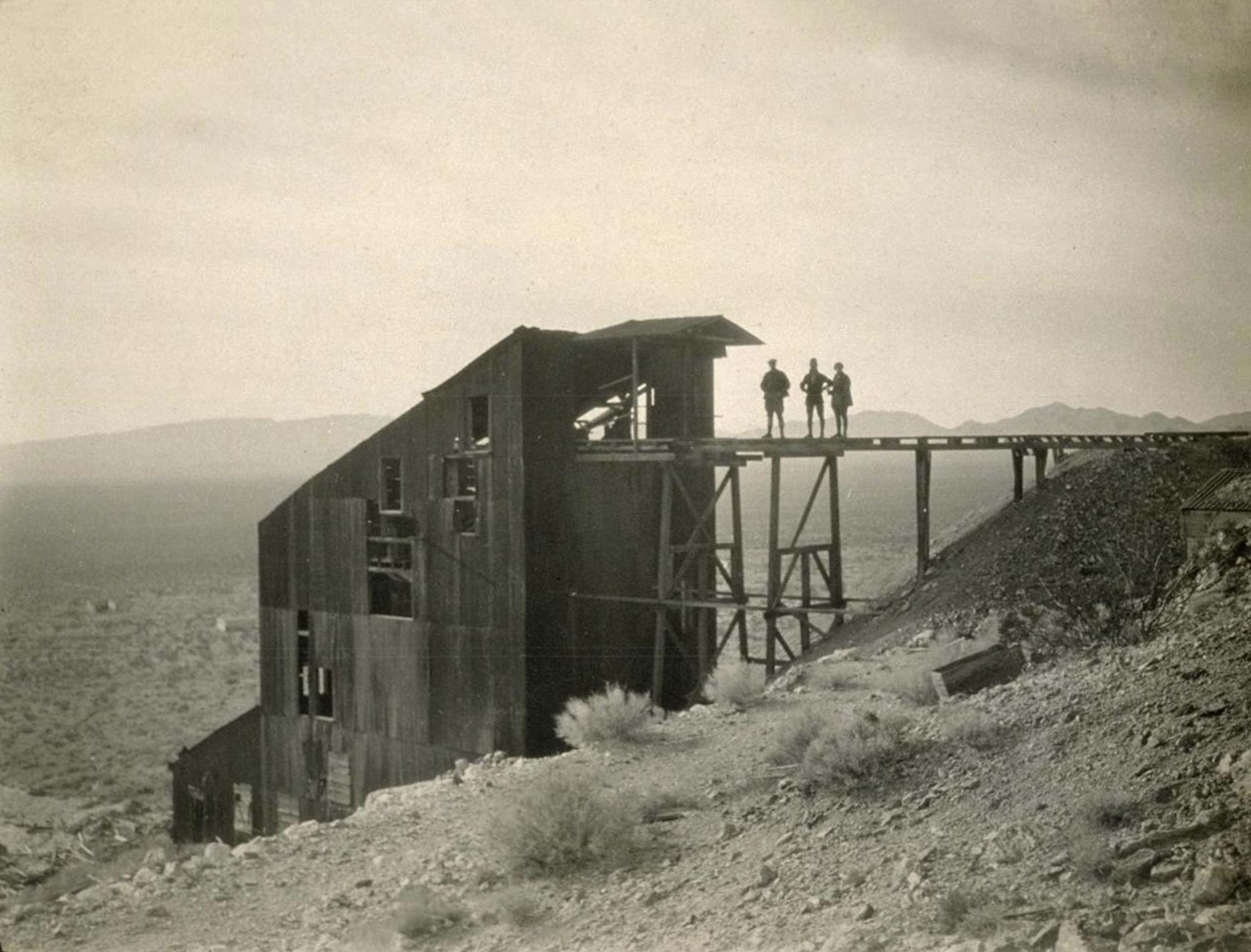 The Montgomery Shoshone constructed a modern mill, which began operation in September 1907, and for a time was a strong producer with gross output approaching two million dollars before closure. Numerous smaller mines and prospects in the “Golden Horseshoe” around Rhyolite employed hundreds more miners, feeding the town’s payroll and its speculative stock market.
