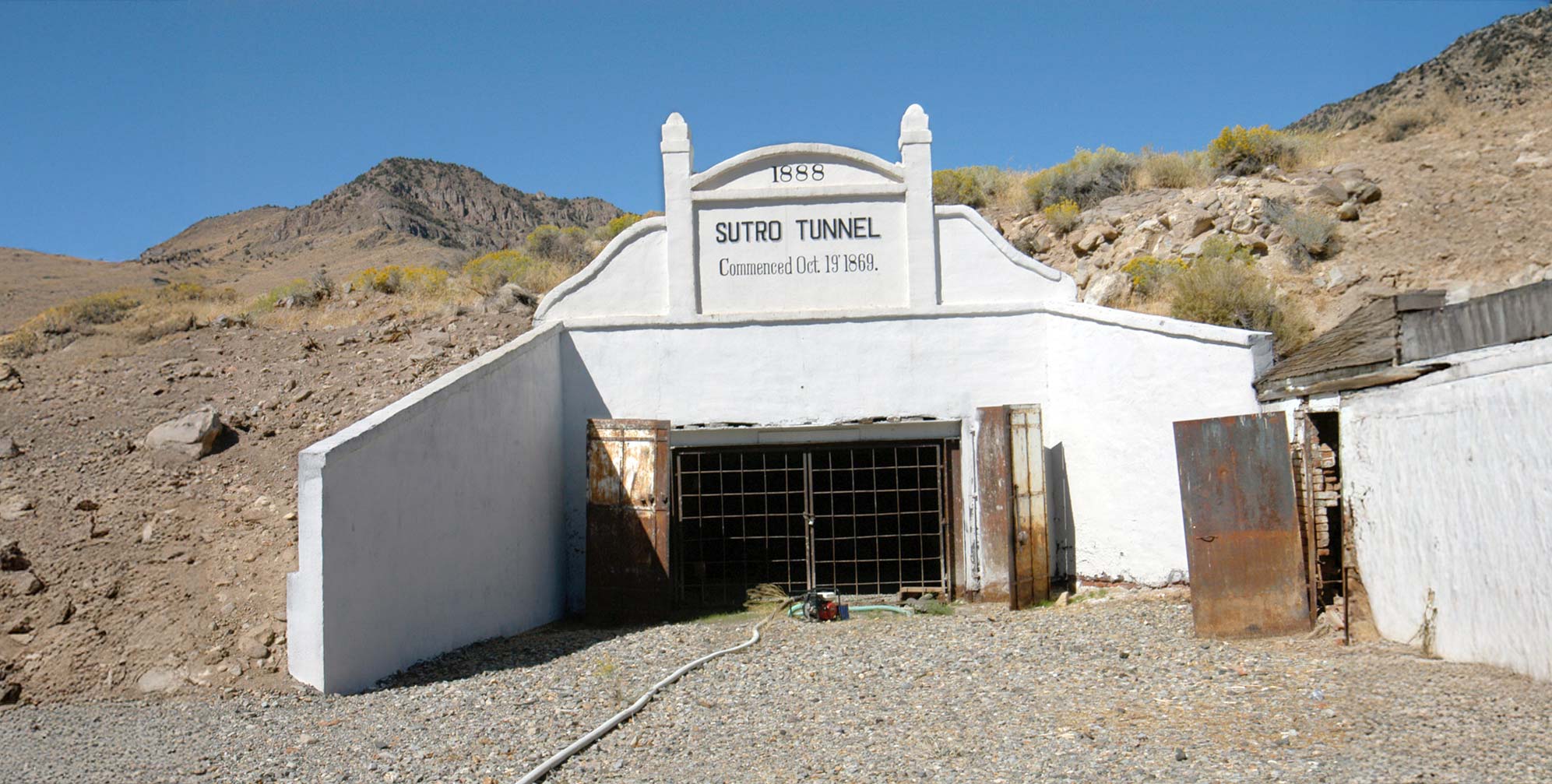 When gushing hot water threatened the production of the ever-deepening Virginia City mines, Bonanza-era entrepreneur Adolph Sutro offered an audacious solution. He would build a tunnel, an astonishing 20,489 feet long excavation through the rock, from the Carson River Valley near Dayton, on a gentle incline up to the Comstock’s mines at a depth of 1,640 feet.